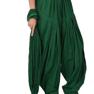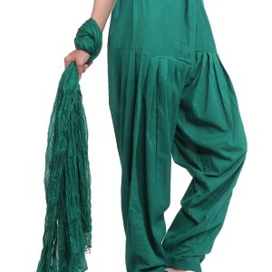 Women's Bottle Green Semi Patiala Salwar With Matching Dupatta