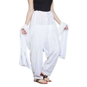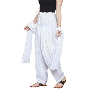 Women's White Semi Patiala Salwar With Matching Dupatta
